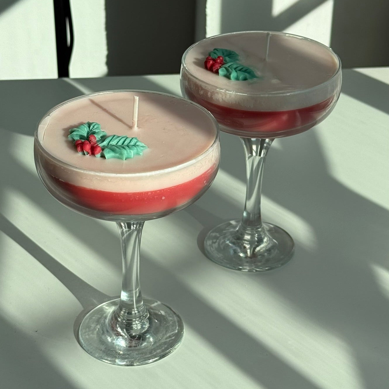 Elegantes y festivas, nuestras velas navideñas en copa aportan un toque único y encantador a cualquier rincón de tu hogar. Vertidas a mano en delicadas copas de cristal, combinan capas de color rojo y crema con pequeños detalles decorativos que evocan la magia de la temporada.